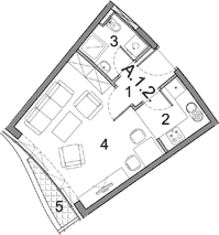 - visina stambenog prostora od poda do stropa preko tri metra (3,05 m nasuprot prosjeka uobičajene gradnje sa visinom stropa od 265 cm)