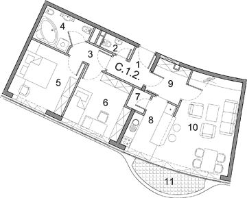 - moderan dizajn, organizacija i raspored stana s velikim staklenim površinama