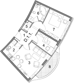 - moderan dizajn, organizacija i raspored stana s velikim staklenim površinama